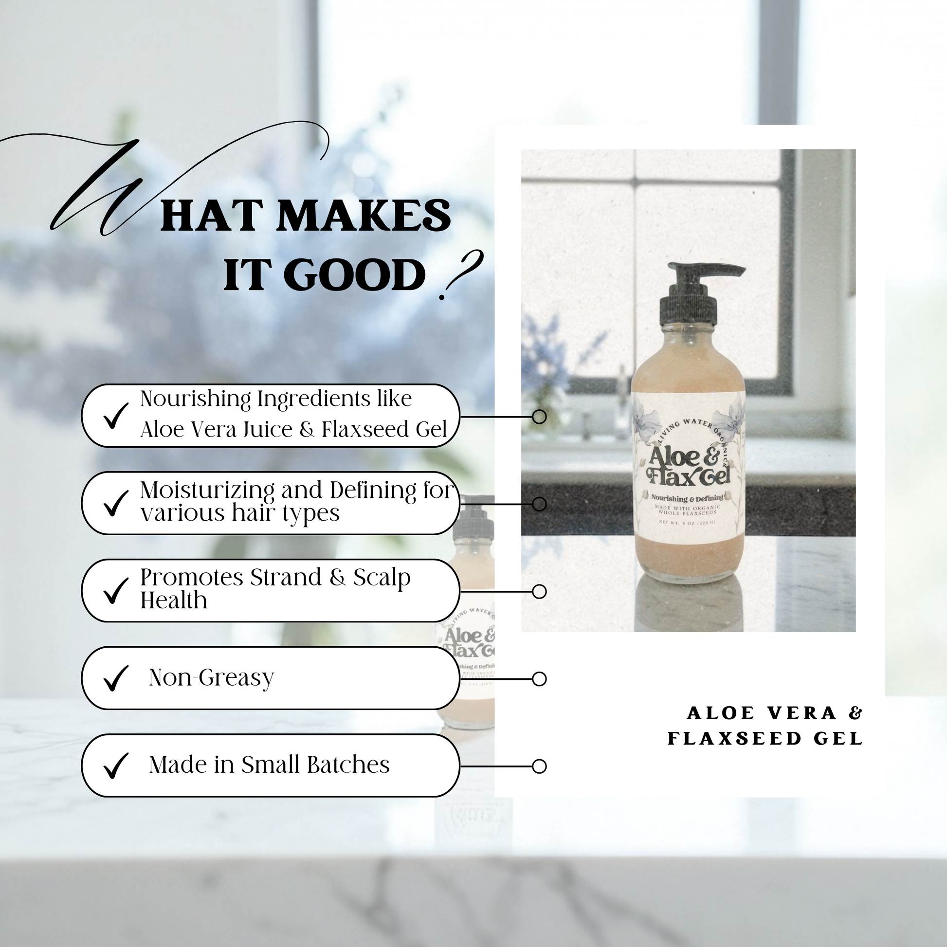 Our Aloe Vera infused Flaxseed Gel is the perfect natural styling gel for your curls, coils, and waves. This lightweight, plant-based gel is crafted with soothing aloe vera and nutrient-rich flaxseed, providing moisture and definition without the crunch. Whether you're defining curls, taming frizz, or adding a natural shine, this gel offers a soft, flexible hold that leaves your hair feeling soft, hydrated, and healthy.