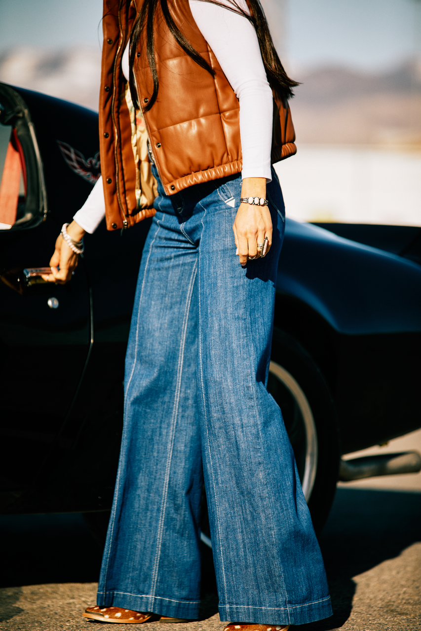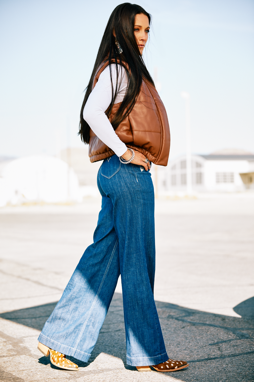 Our highest rise meets our widest leg in this statement jean. From the wash to the front pintuck to the pocket details, it blends vintage Western vibes with an of-the-moment fit. Dress it up with a blazer for a lunch meeting or style it with a crop top for a concert.