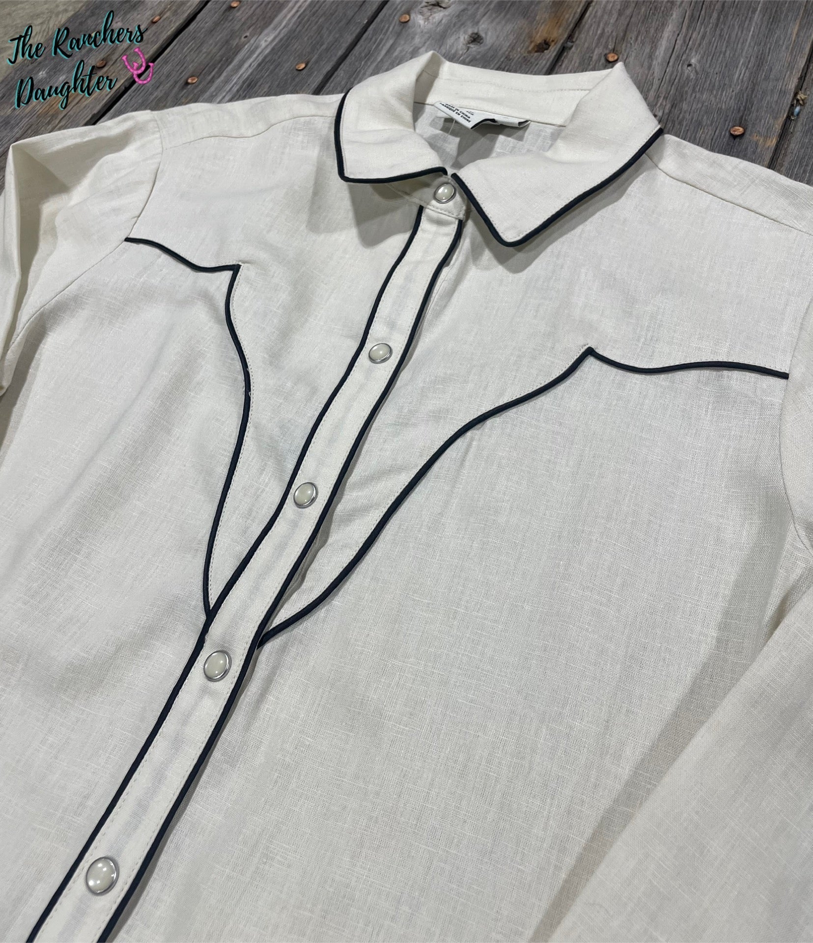 This women’s pearl snap is what dreams are made of. With a linen viscose fabric and western yoke detail.