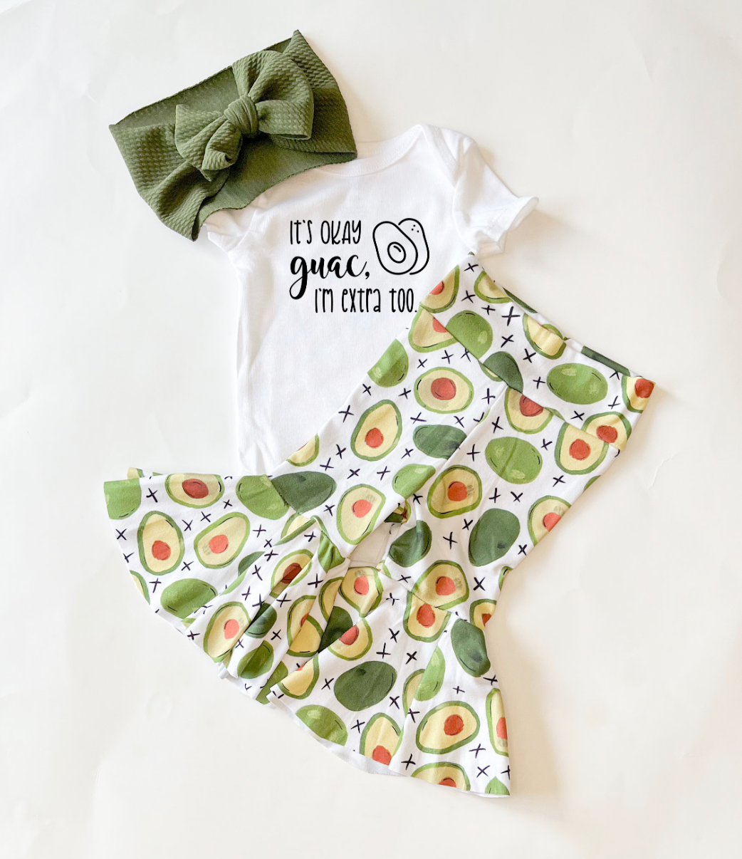 This adorable baby outfit set features soft and stretchy high waisted bells and coordinating baby bodysuit. Our bodysuits feature buttery soft cotton, perfect for babies delicate skin. Bell bottoms are trendy, comfortable, and make the most adorable gift!