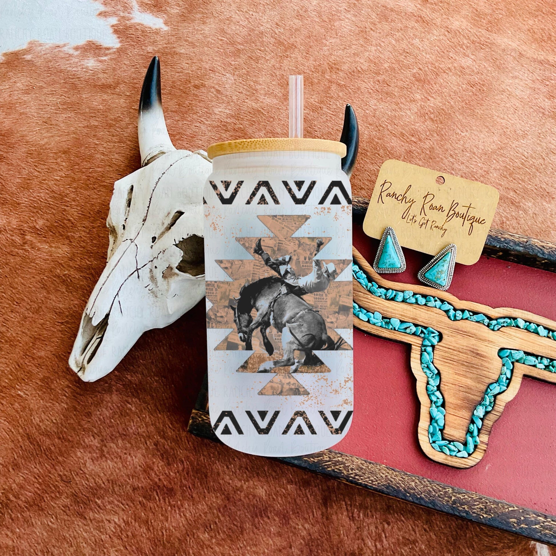 Aztec Rodeo Frosted Glass Western 16oz Tumbler