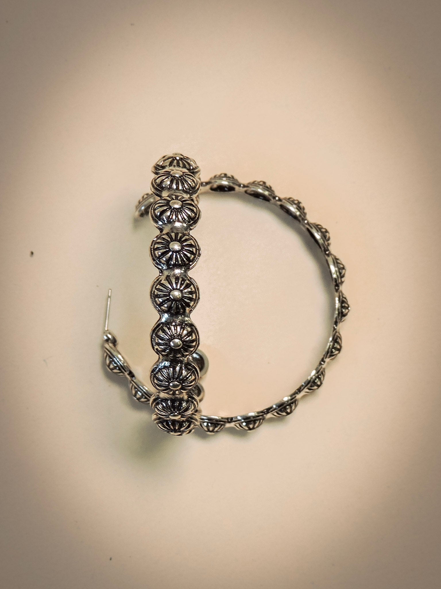 Versatile and stylish, these Western Stud Hoop Earrings transition seamlessly from day to night. Pair them with a flowy bohemian dress for a chic western-inspired look, or wear them with your favorite denim and a classic button-up for a touch of everyday elegance. The intricate design details make them a standout piece, yet their timeless appeal allows them to blend effortlessly with any wardrobe. These earrings serve as the perfect finishing touch for any outfit, making them an essential accessory for every western fashion enthusiast.