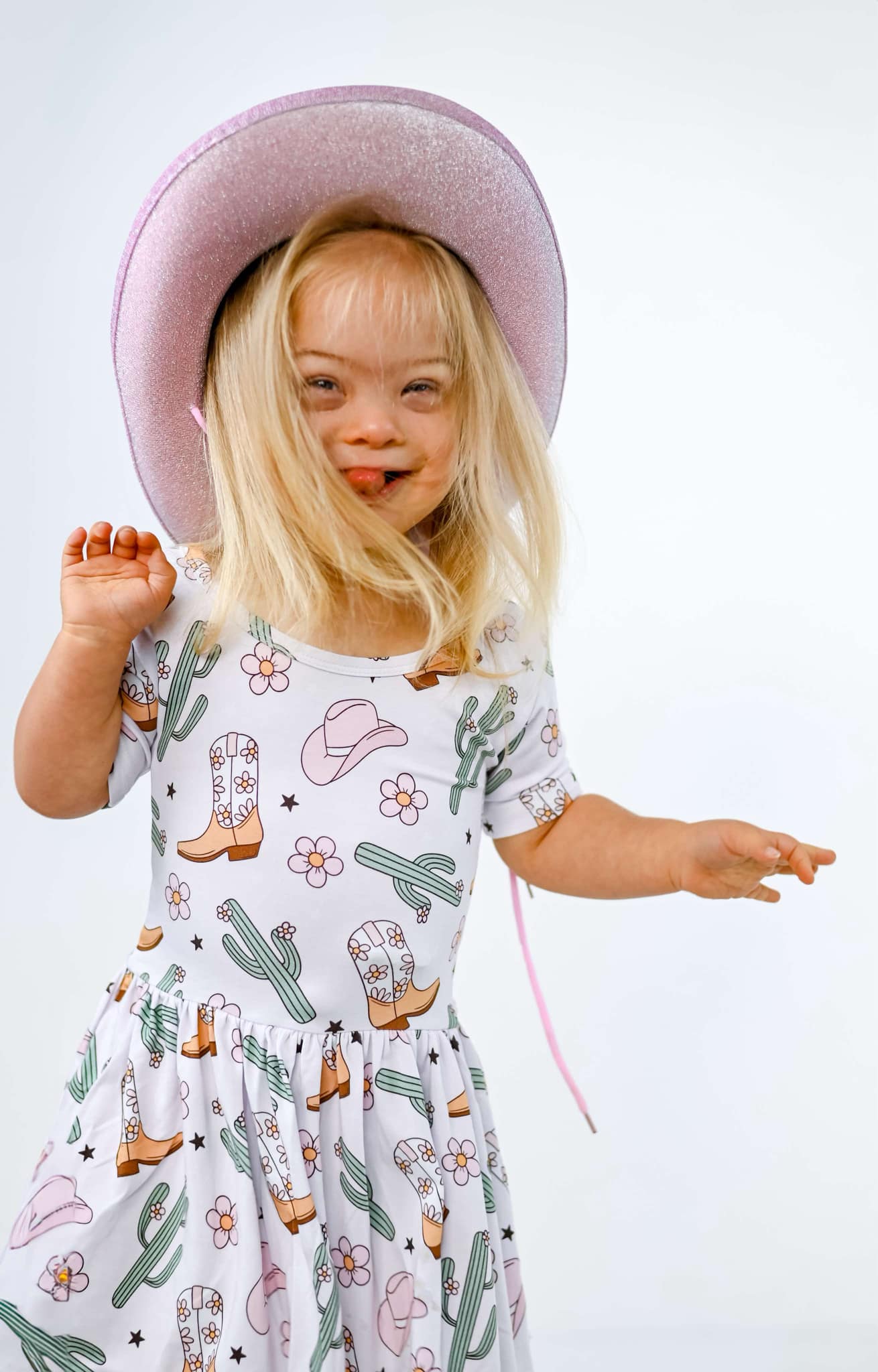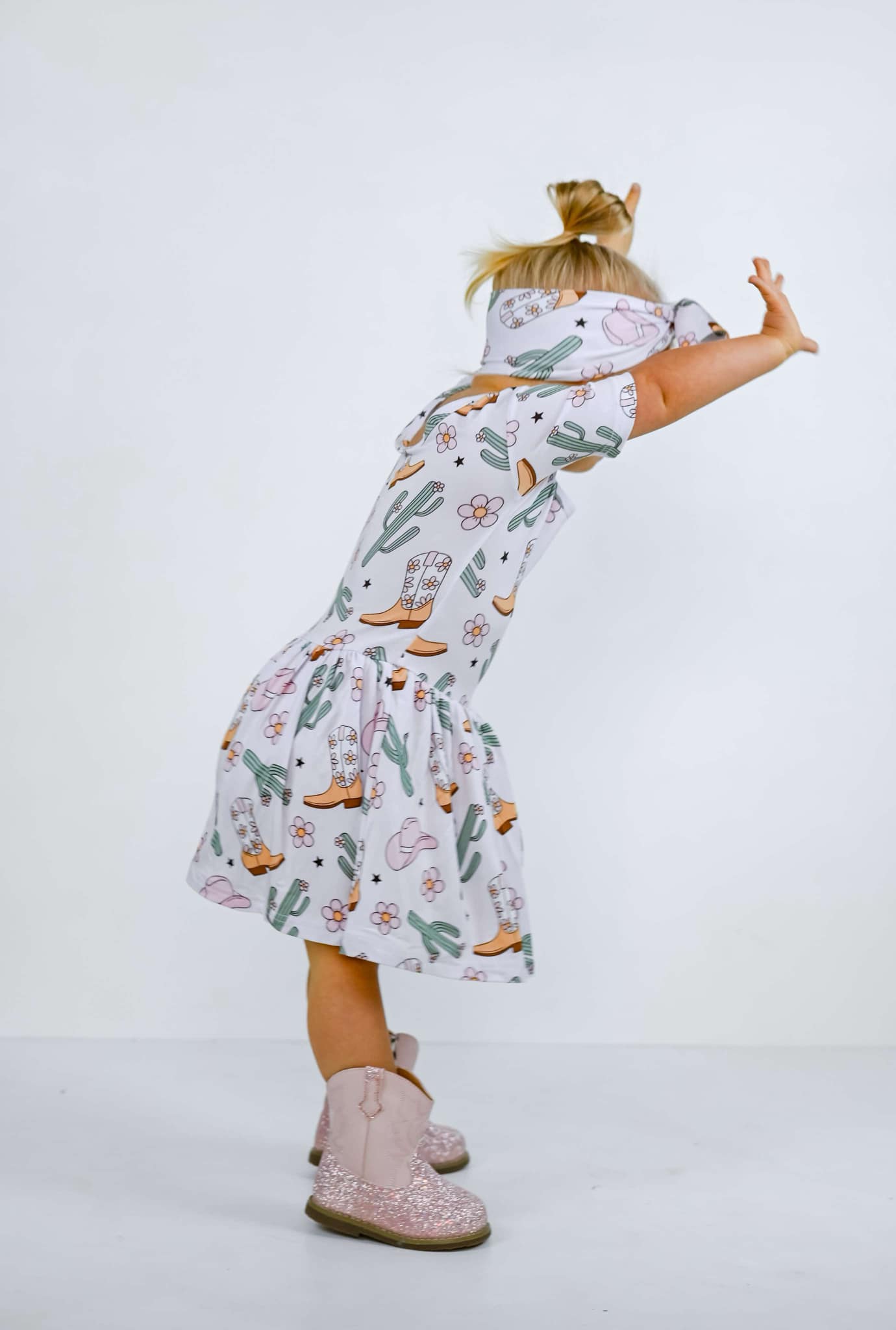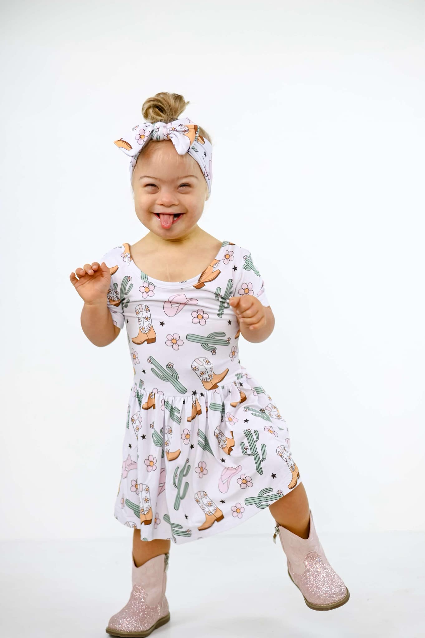 Your little cowgirl will be the cutest on the range in this ultra-soft bamboo bodysuit dress! Featuring a sweet western print with cowboy boots, cacti, flowers, and hats, this dress is perfect for photoshoots, rodeo days, or just adding a little yeehaw to everyday play.