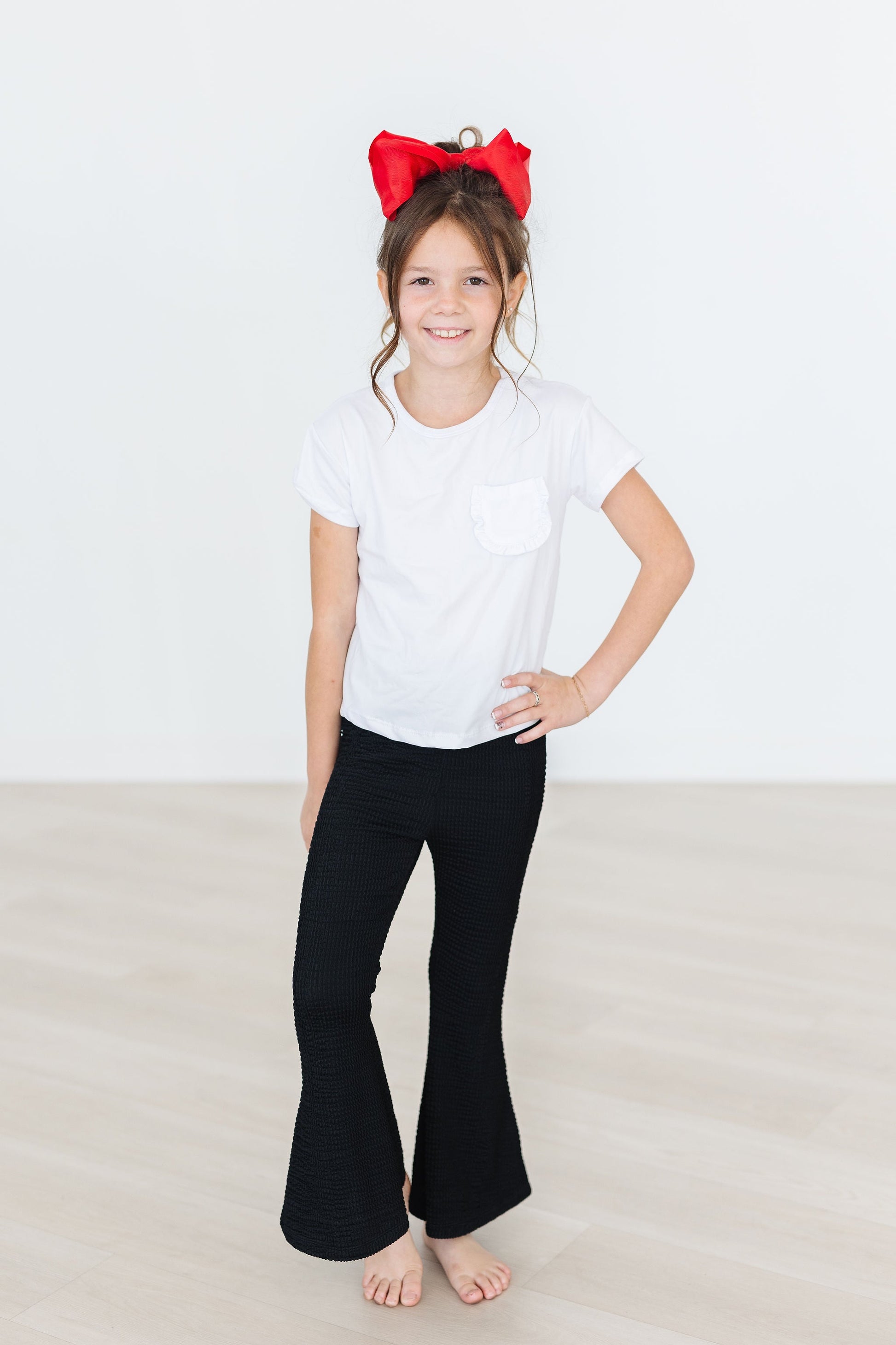 Our scrunchy fabric is the newest addition to your favorite bells. Classic and stylish, this collection is perfect for special occasions, school, and everyday play! Pair our bells with a ruffle tee, cardigan or satin jacket for a trendy look!