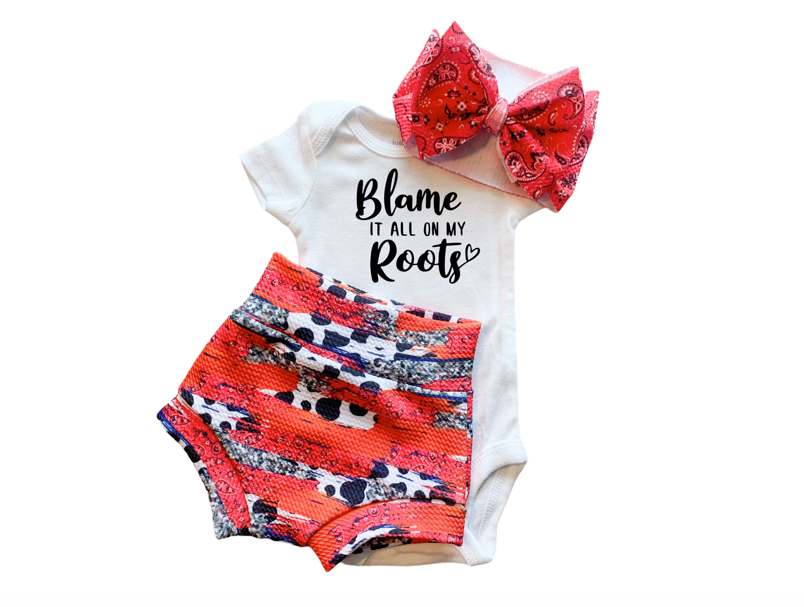 This adorable baby outfit set features soft and stretchy high waisted bummies and coordinating baby bodysuit. Our bodysuits feature buttery soft cotton, perfect for babies delicate skin. Bummies are trendy, comfortable, and make the most adorable gift!