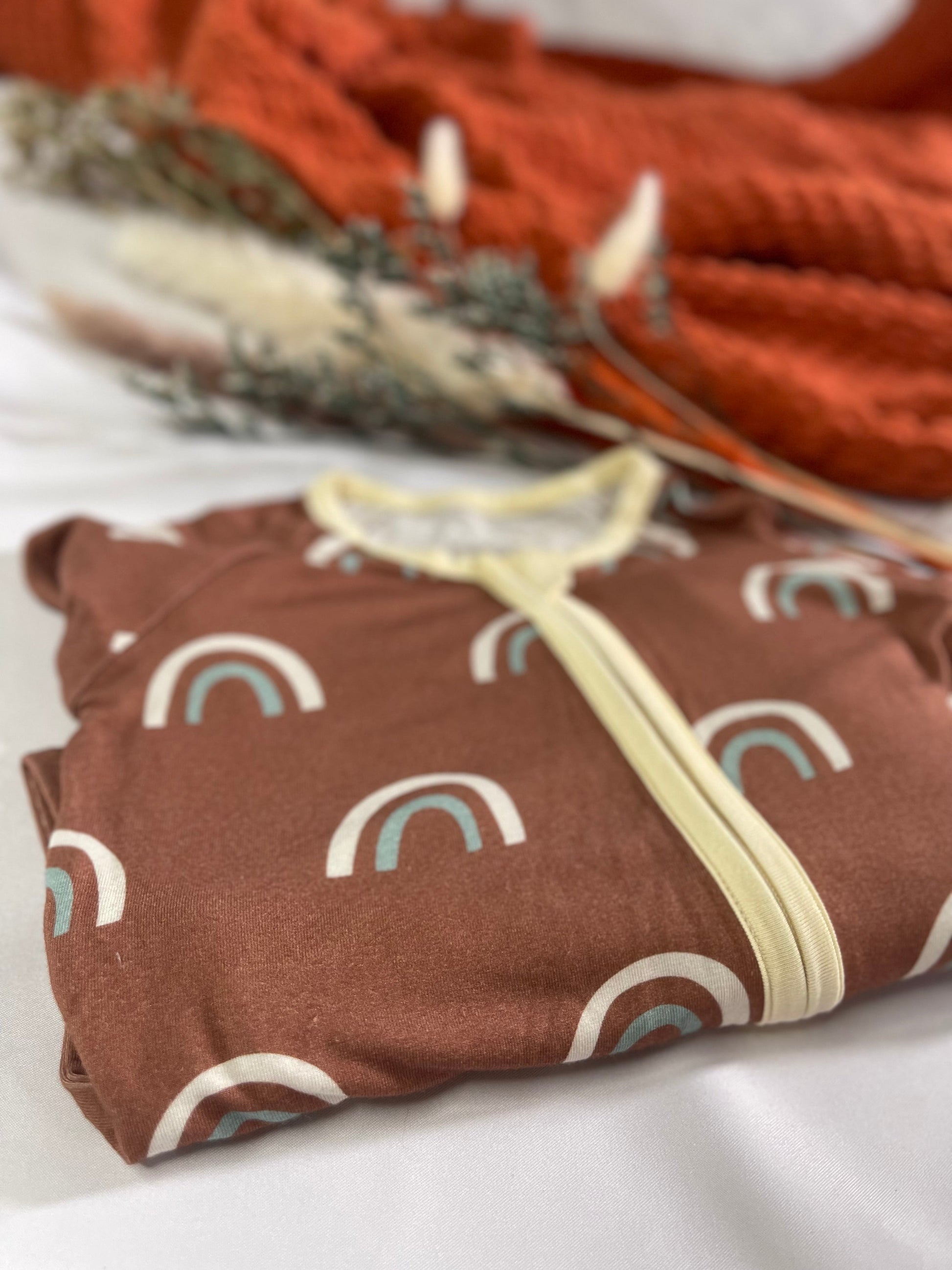 You’ll love our new Boho Rainbows print convertible bamboo romper! Perfect for playing AND snuggling, day or night.
