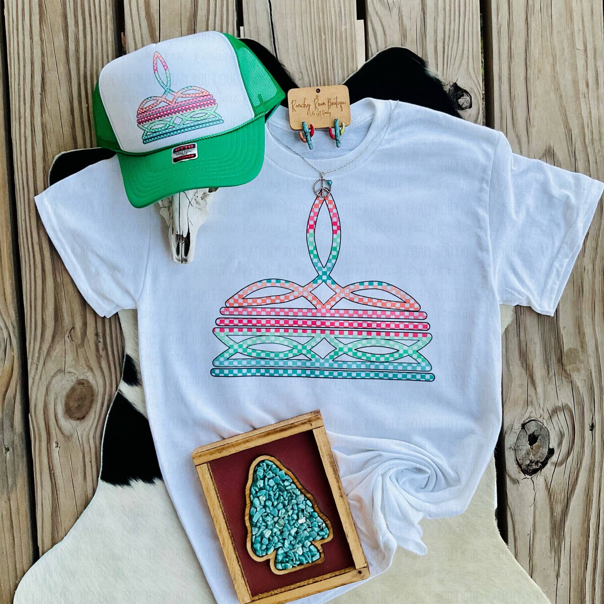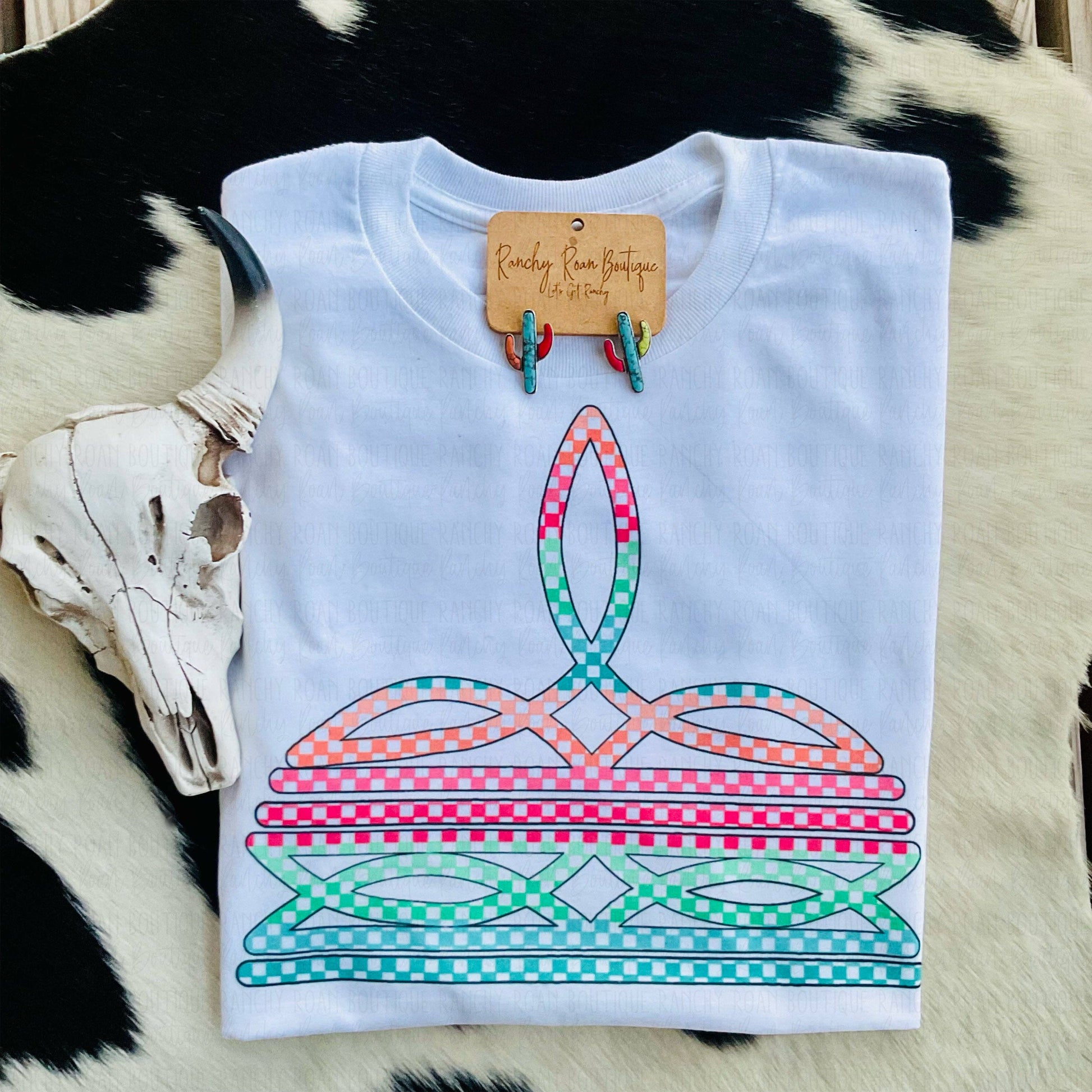 Checkered Boot Stitch Western Viral Tee
