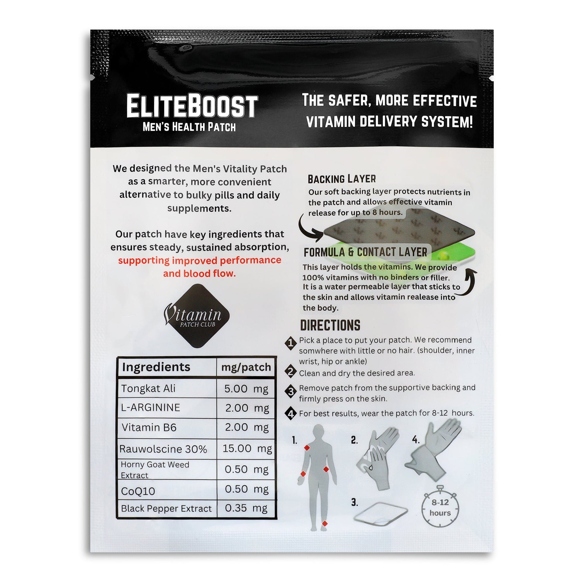 The EliteBoost Men’s Patch is a powerful transdermal solution crafted to enhance male performance, energy, and vitality. Designed for convenience and efficacy, this patch delivers a concentrated blend of natural ingredients directly through the skin, ensuring maximum absorption and fast-acting results.