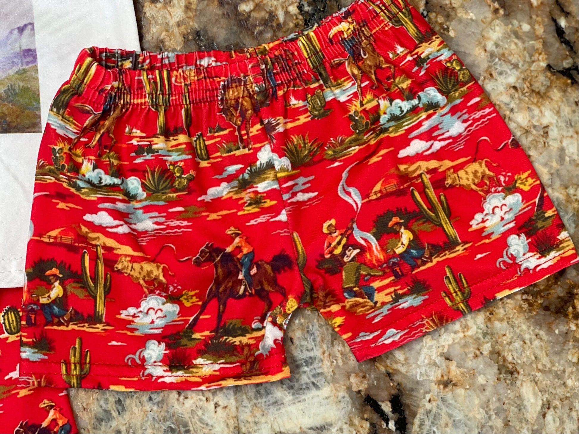 Saddle up in style with this adorable Girls’ Cowgirl Outfit! This Retro Western Short Set is perfect for summer rodeos, playdates, or just lounging in comfort. The set includes a stylish Rodeo Shirt featuring a bold bronc rider graphic and matching Cowboy Shorts with a fun vintage-inspired Western print.