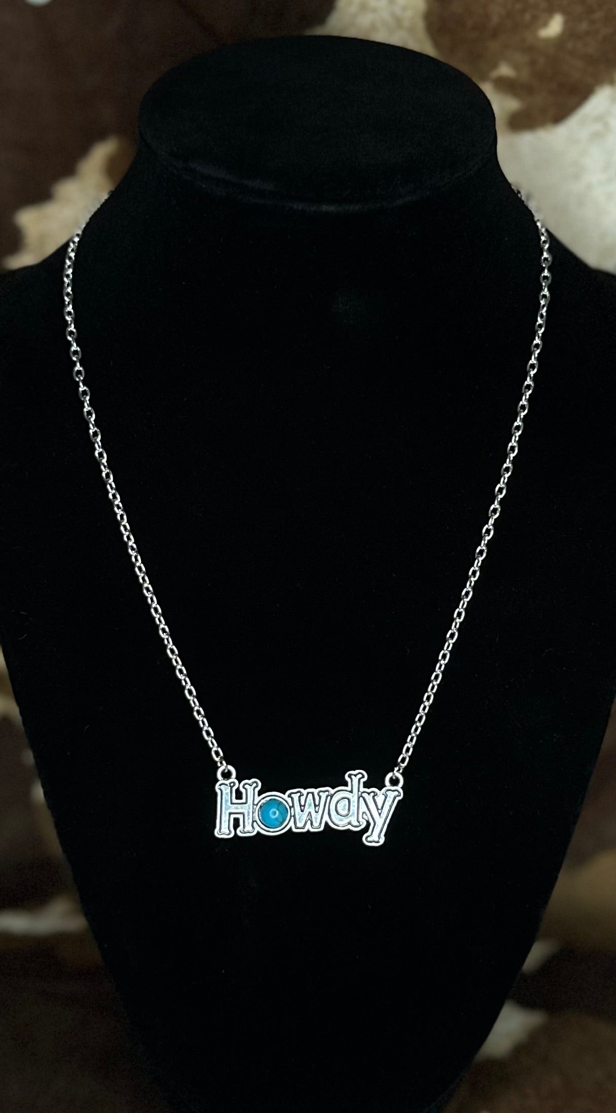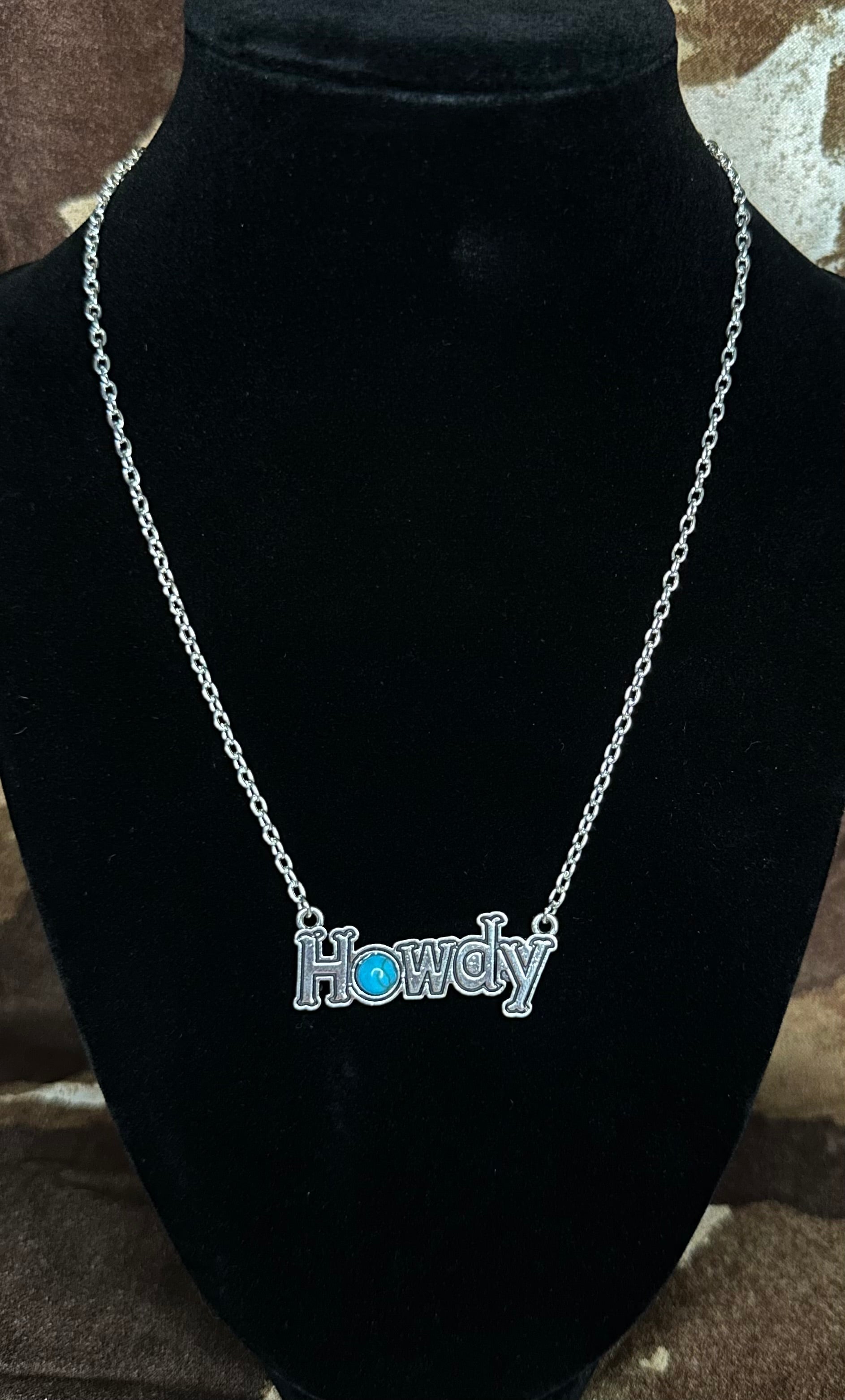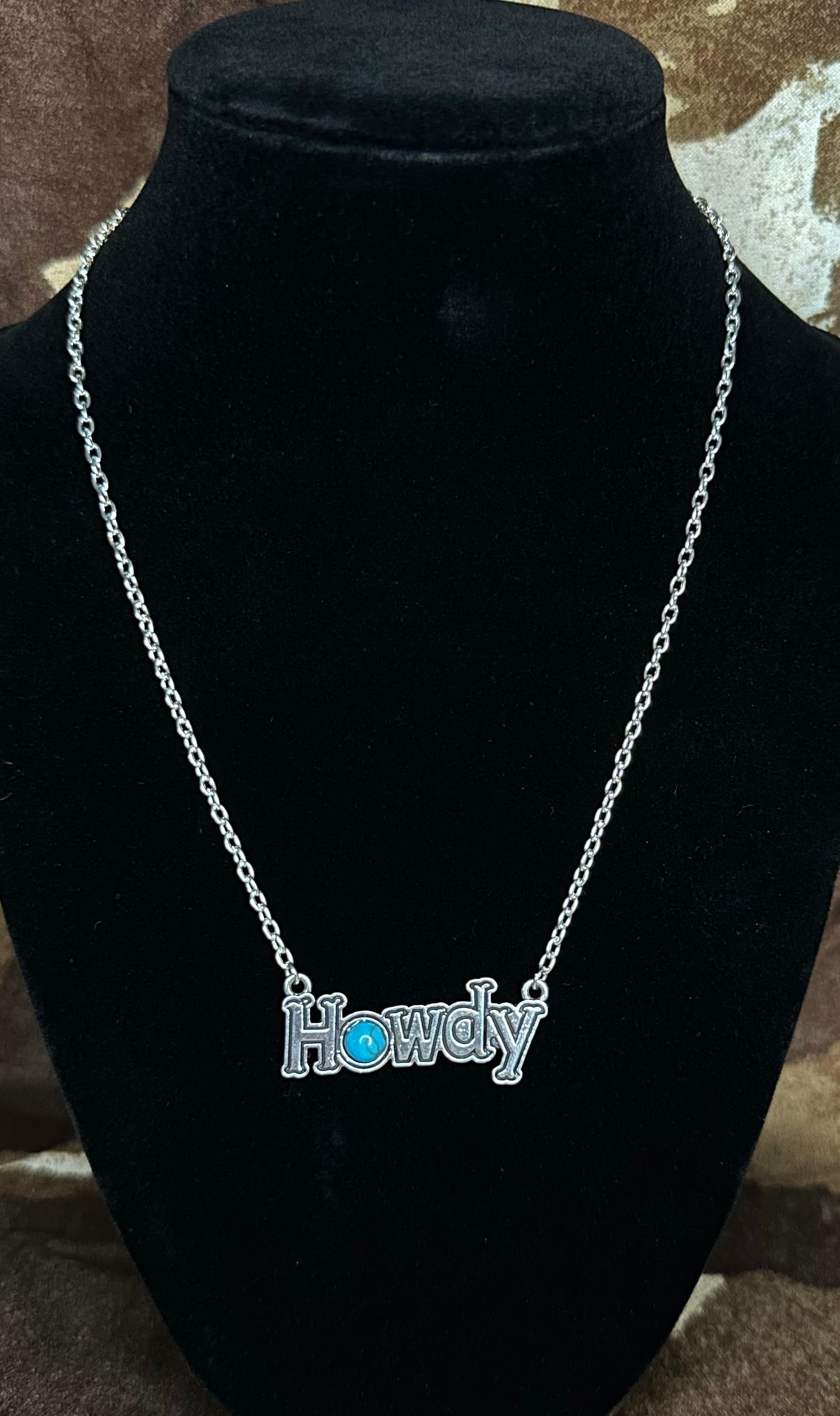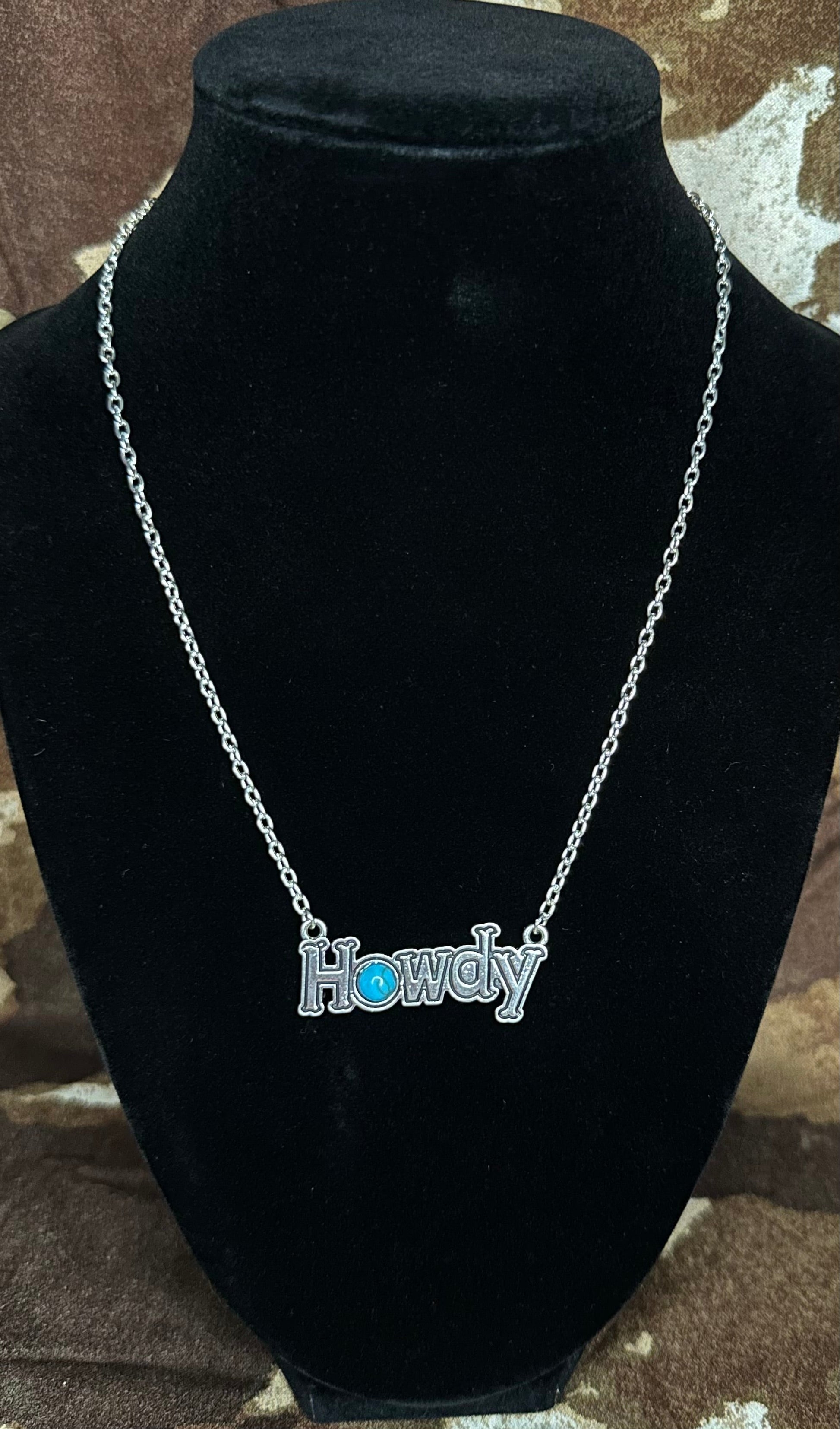 A little sass, a little shine, and a whole lotta Western charm. The Howdy Darling necklace features a silver chain with a lobster clasp and a playful “HOWDY” charm that hangs proudly at the center. The star of the show? A genuine turquoise stone set in the “O”, giving it that perfect desert soul energy.
