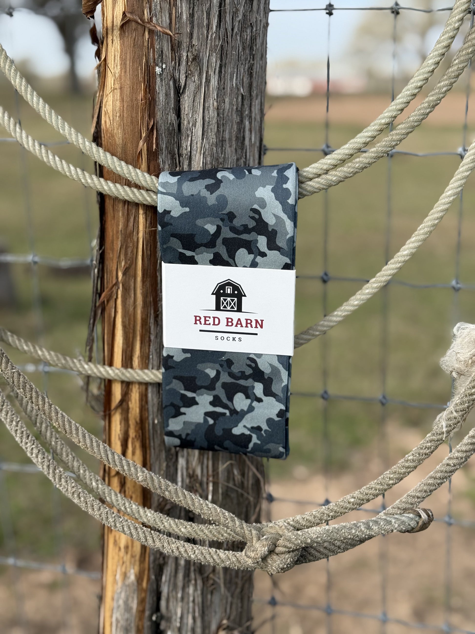 Stay stealthy in style with Just Blend’n In - Red Barn Socks, featuring a neutral black and grey camo design. Perfect for those who appreciate a subtle yet bold look, these Western-themed boot socks offer the ultimate in comfort and versatility. Crafted from breathable, durable fabric, they’re ideal for long days at work, on the ranch, or out on the trail. Whether you’re blending in or standing out, these socks are the perfect addition to any outfit. Step up your sock game with Red Barn Socks!