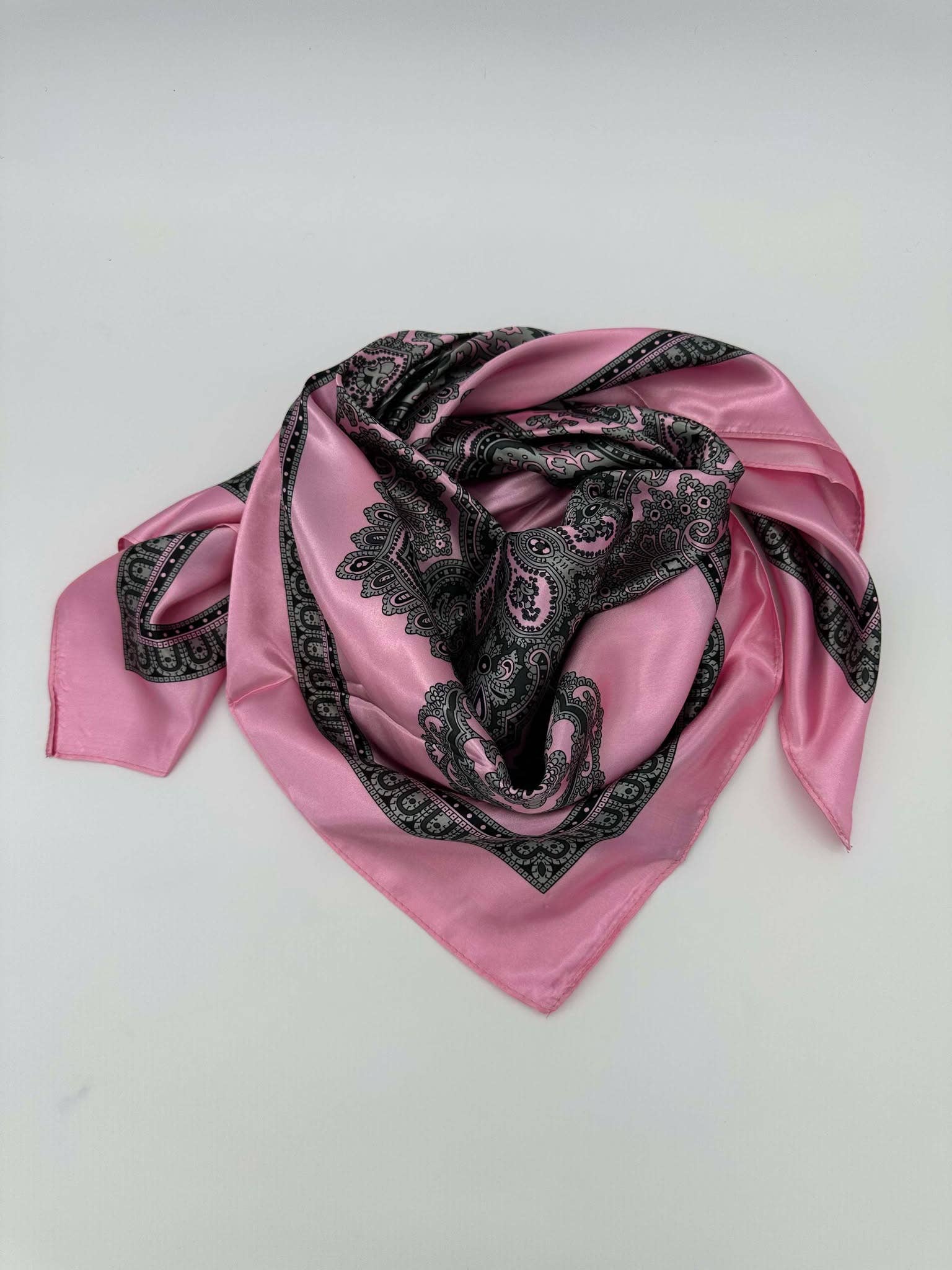 Add a pop of color and playfulness to your wardrobe with our Paisley Border scarf! Made of 100% Poly Satin, this 36x36 scarf is perfect for any season, and its unique design will surely make a statement. Say goodbye to boring outfits and hello to fun fashion!