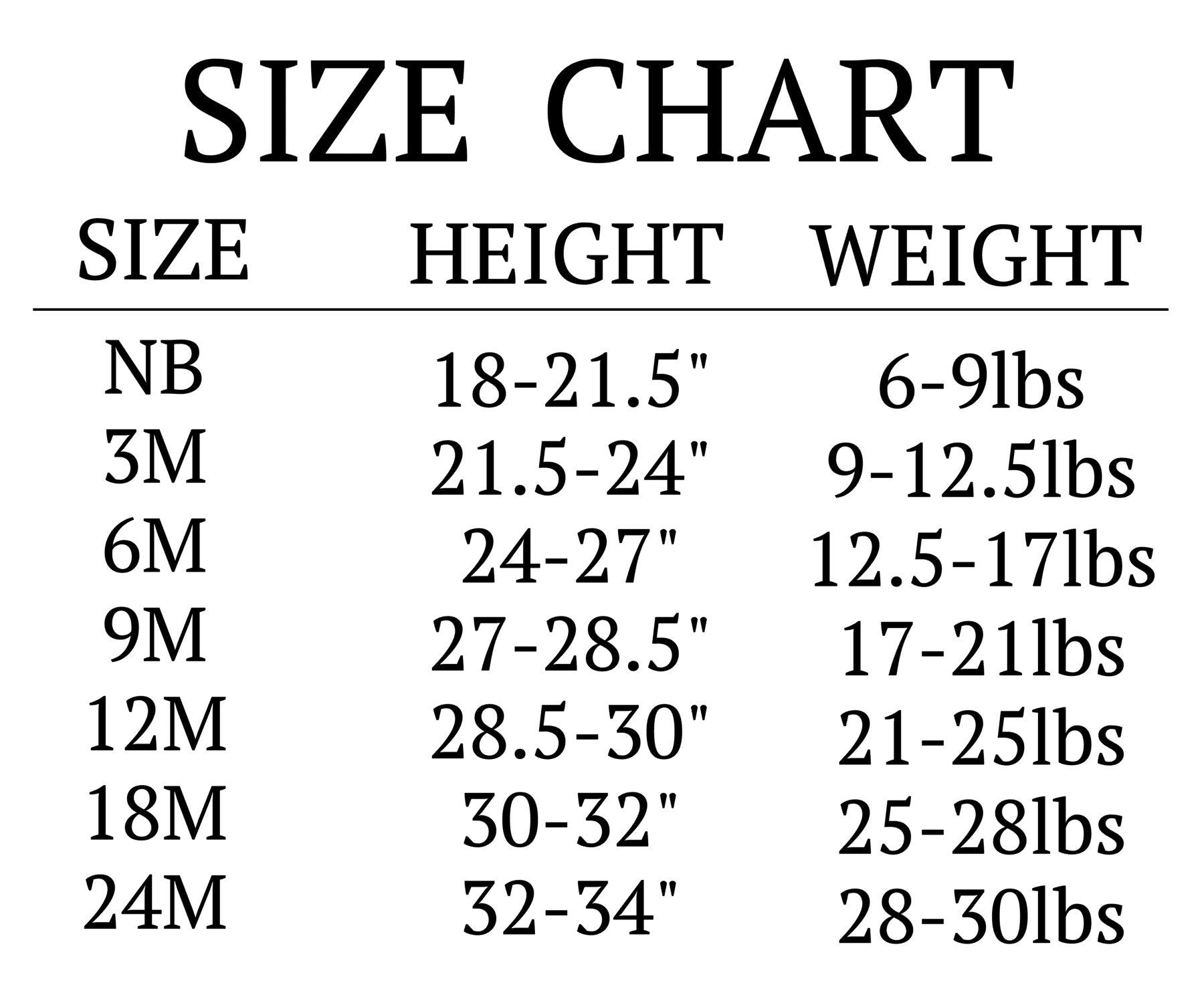 •Sizes newborn through 24 months