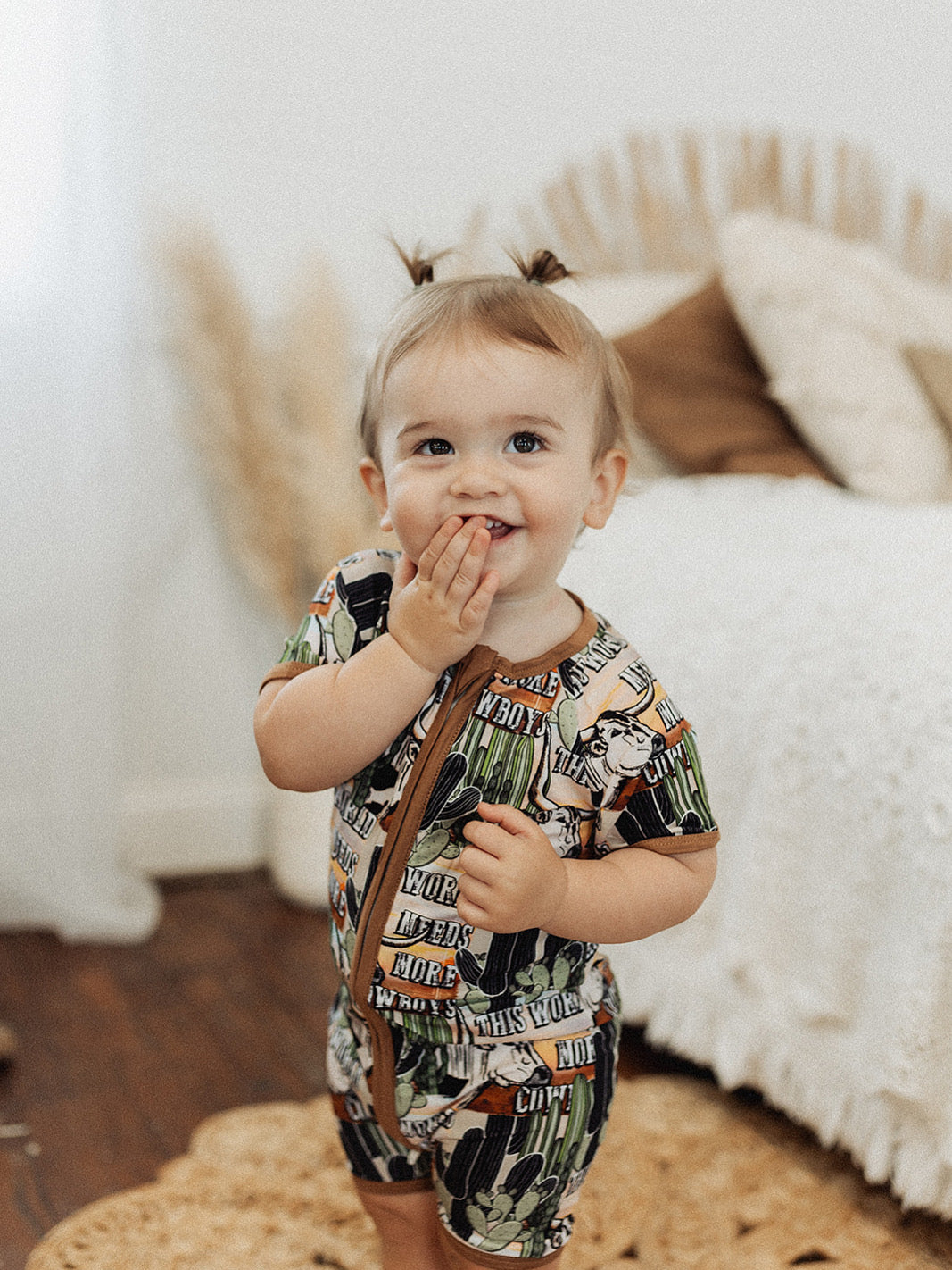 Made from silky bamboo viscose, this set is super soft, super stretchy, and made to handle every tumble and yeehaw your little one has in them.