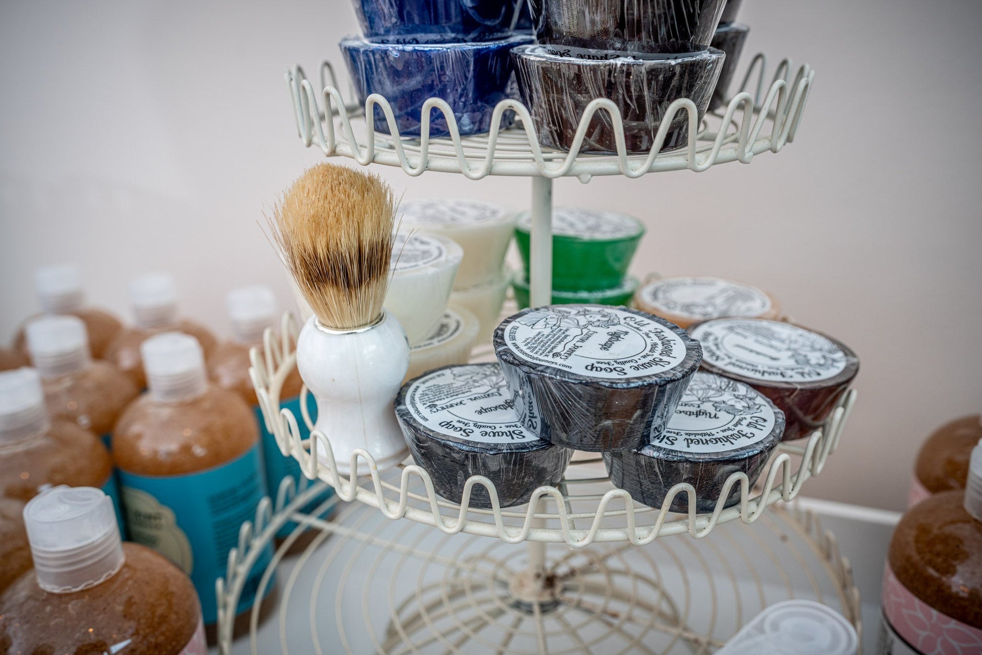 Essential Journeys® Shave Soaps. Created for the man who likes a close shave the old fashioned way. This soap lathers well with a brush or use it strait on your face, legs, anywhere you need to shave.