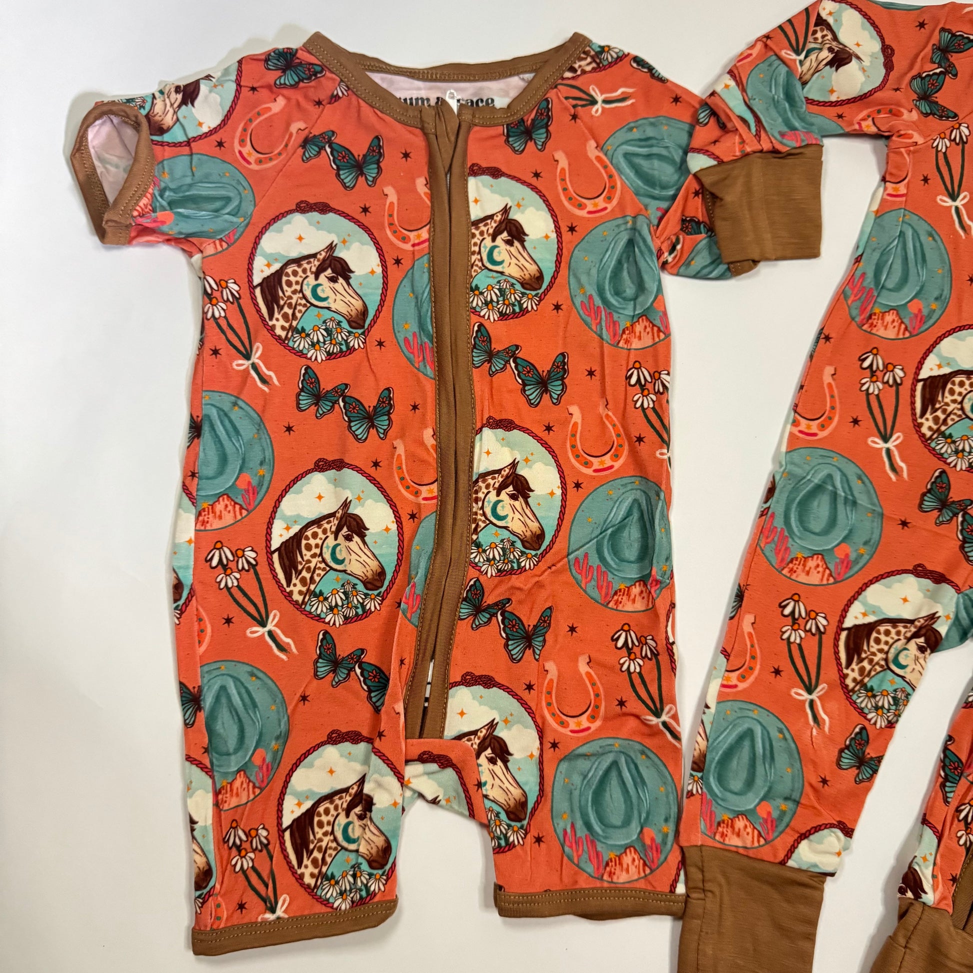Made from silky bamboo viscose, this set is super soft, super stretchy, and made to handle every tumble and yeehaw your little one has in them.