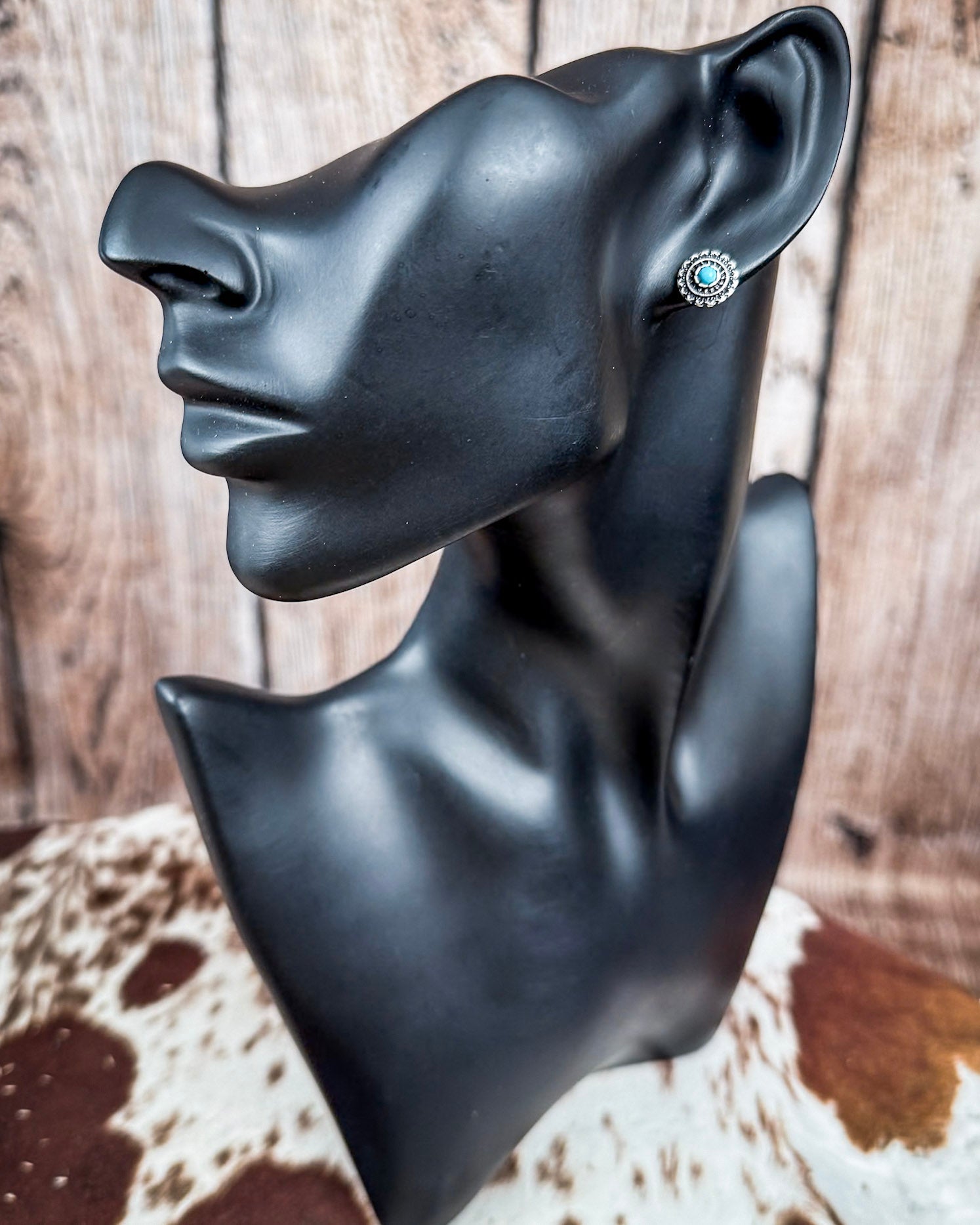 The silver-colored metal gives off a classic, slightly vintage finish—easy to style with everything from denim and boots to soft knits and flowing dresses. And those pops of faux turquoise? They add that perfect little western wink without overpowering your outfit.