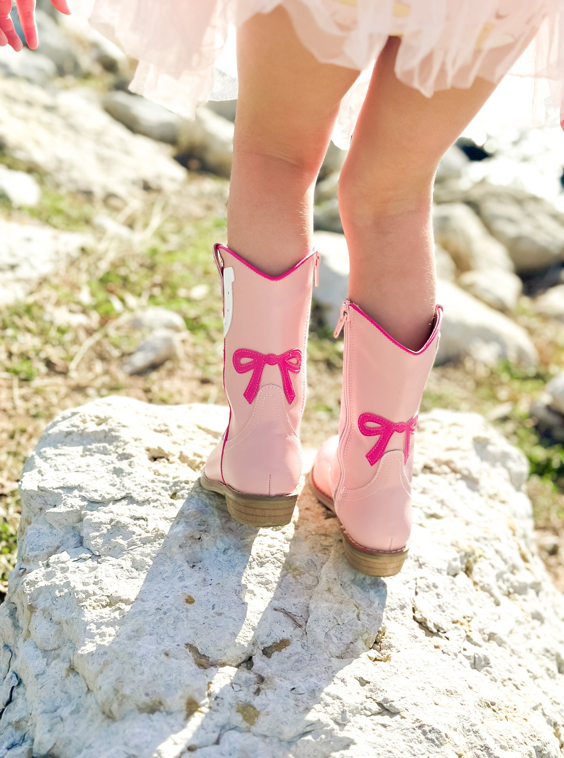 Safehaven Pink Toddler Cowgirl Boots – Horseshoe & Bow Detail – Vegan Leather Western Boots for Girls