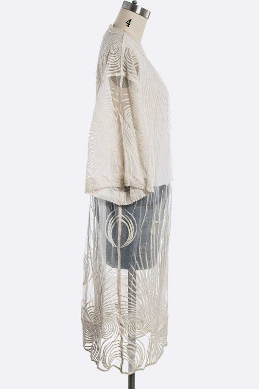 Spiral Lace Embroidered Kimono Duster Cardigan