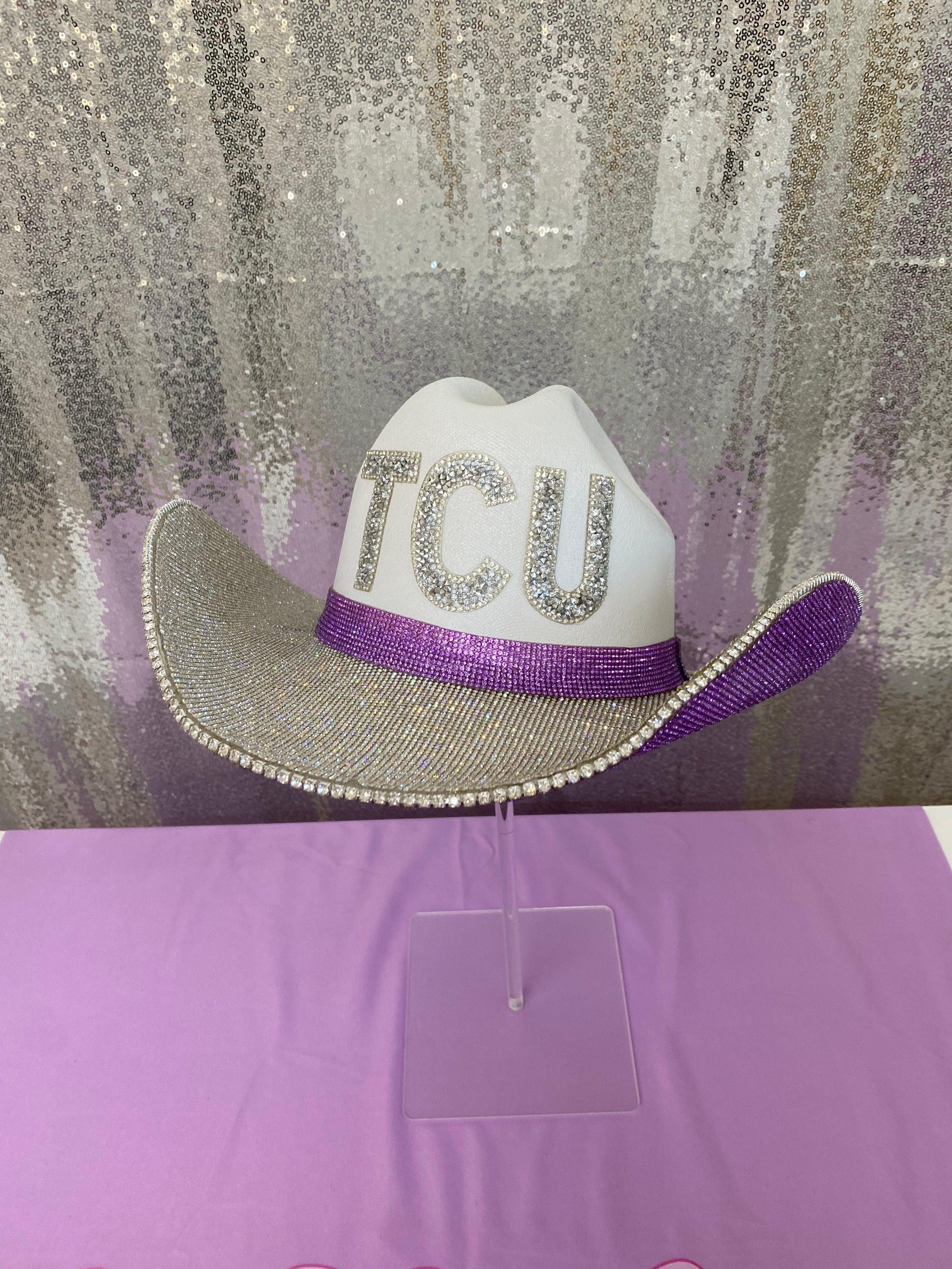 - TCU crystal letters on the front of the hat