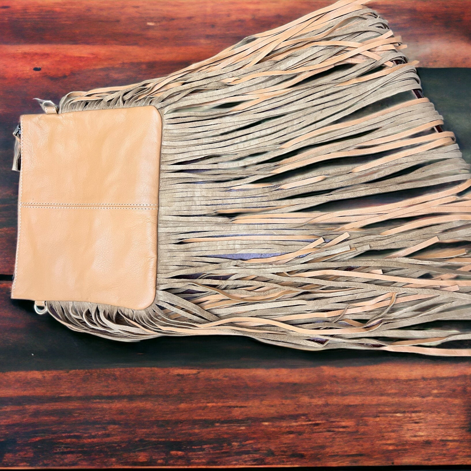 Genuine Leather Fringe 9.5” x 8” x 1. Every purse is one of a kind. Please note that this is real cowhide and leather and there can be small defects.