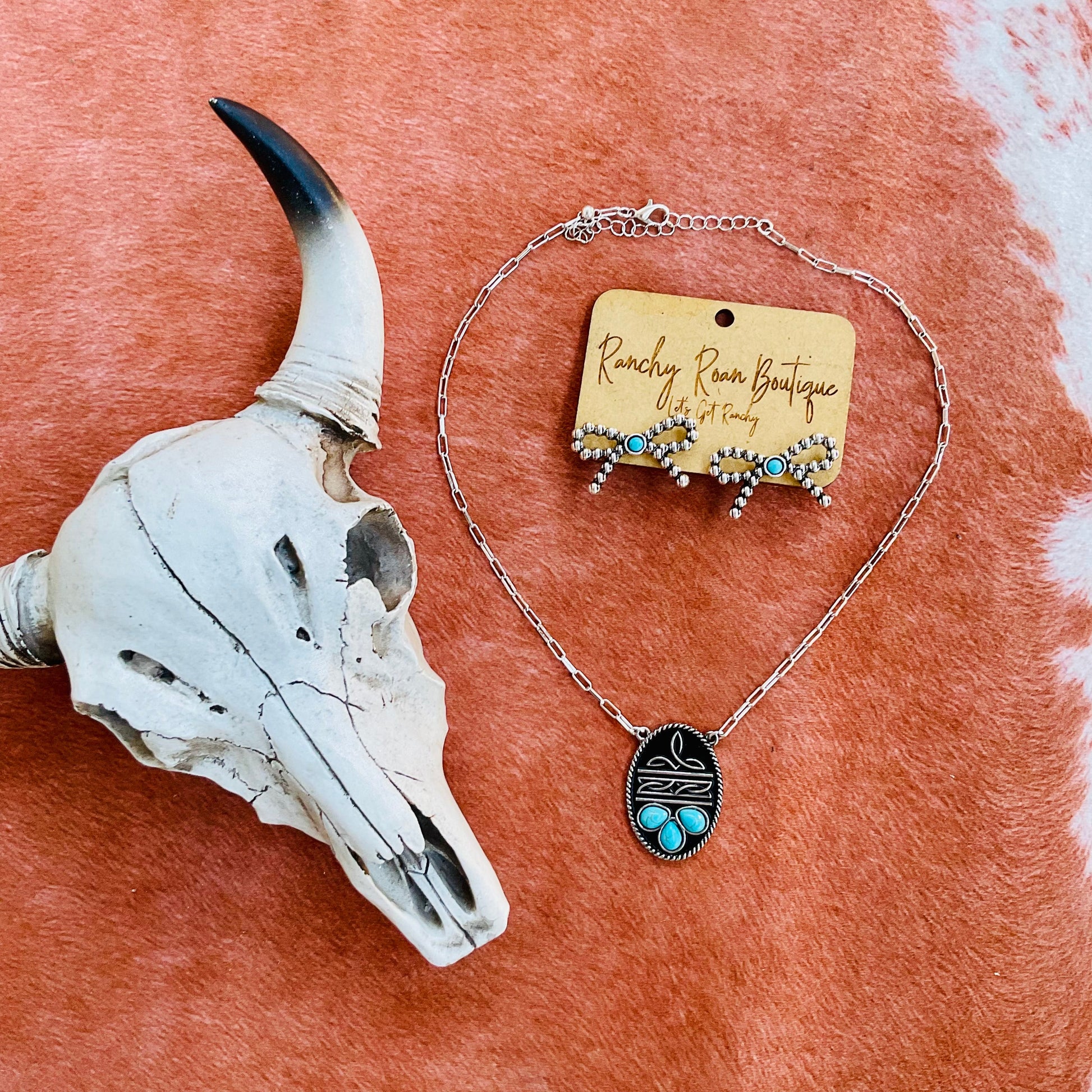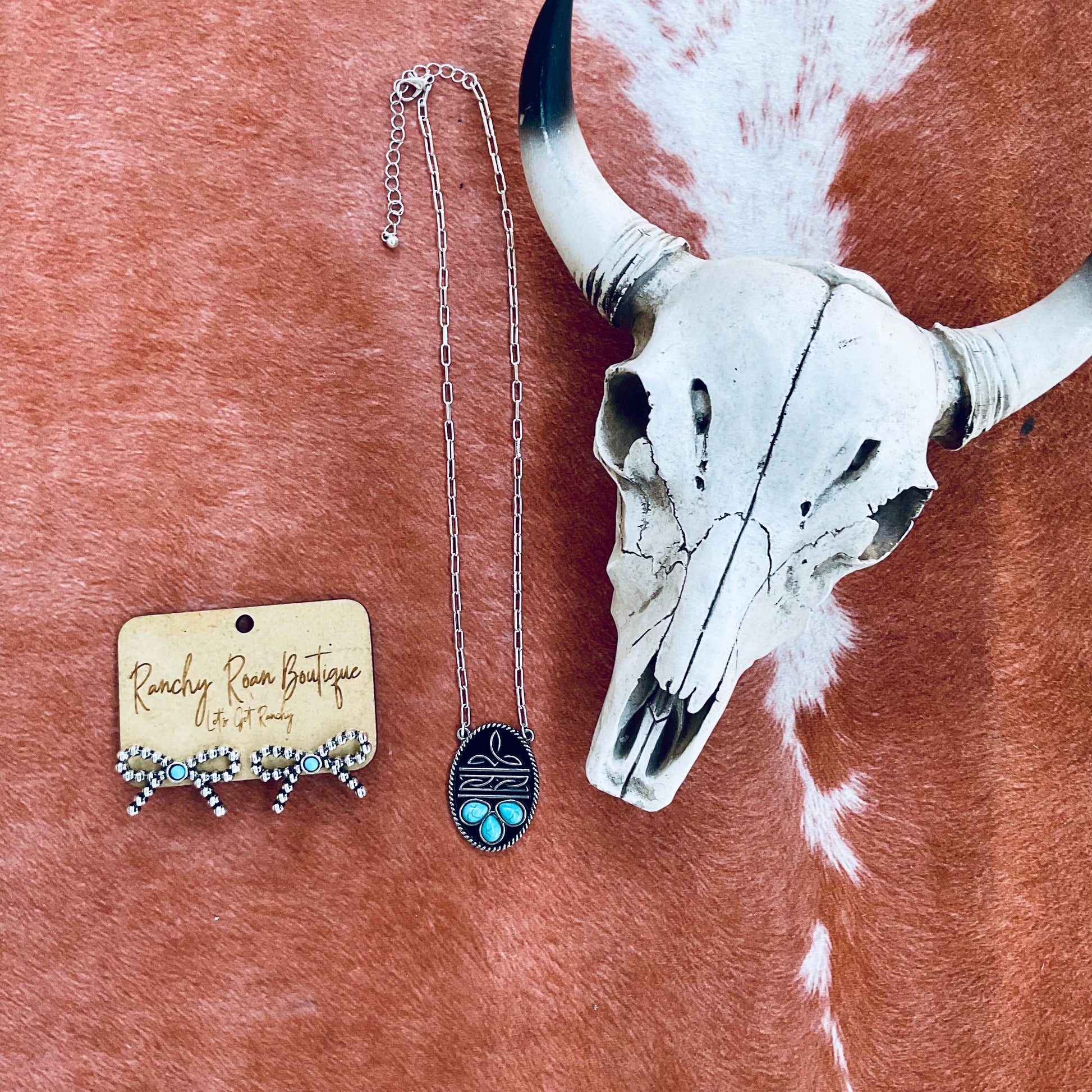 Elevate your Western-inspired wardrobe with the Western Boot Stitch Pendant Necklace. Featuring a burnished silver oval pendant with intricate boot stitch details and turquoise accents, this necklace is a must-have for any boutique collection. The 16” chain with a 3” extension ensures a versatile fit for any look.