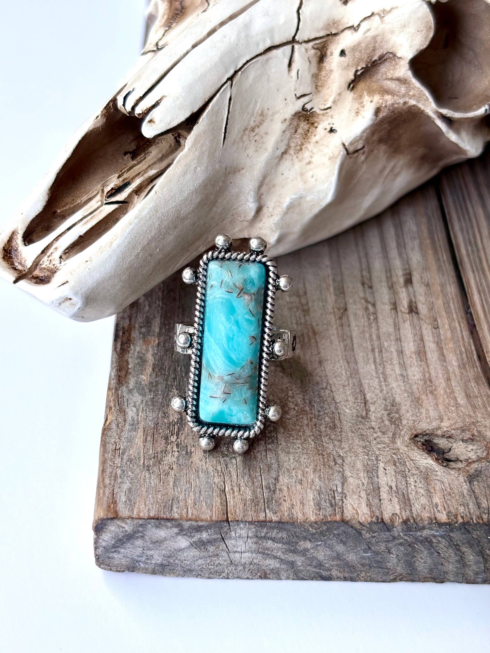 Western Rectangle Concho w/ Marble Stone Stretch Band Ring
