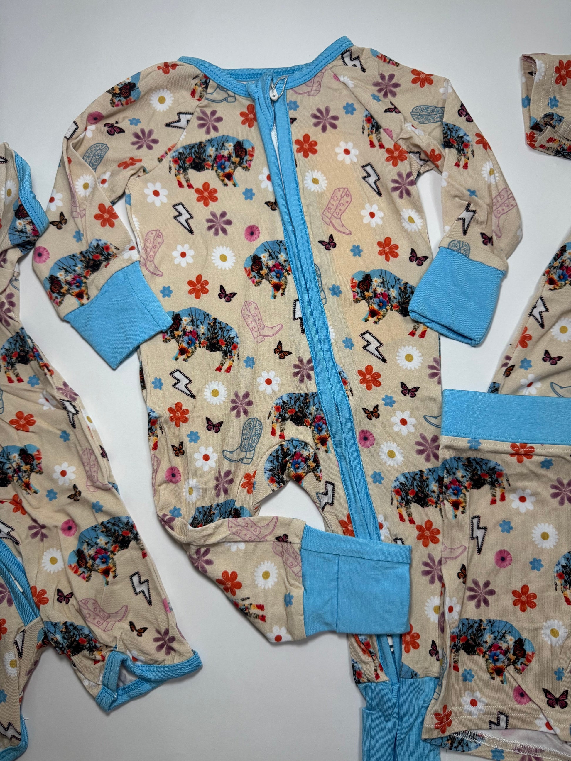 Made from silky bamboo viscose, this set is super soft, super stretchy, and made to handle every tumble and yeehaw your little one has in them.